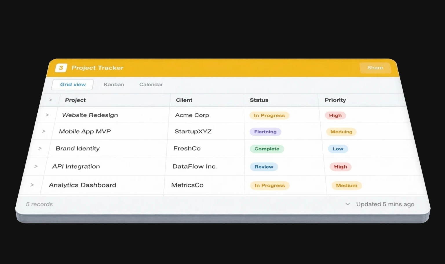 - Experiência personalizada com a marca da sua empresa — seus usuários nunca veem o Airtable